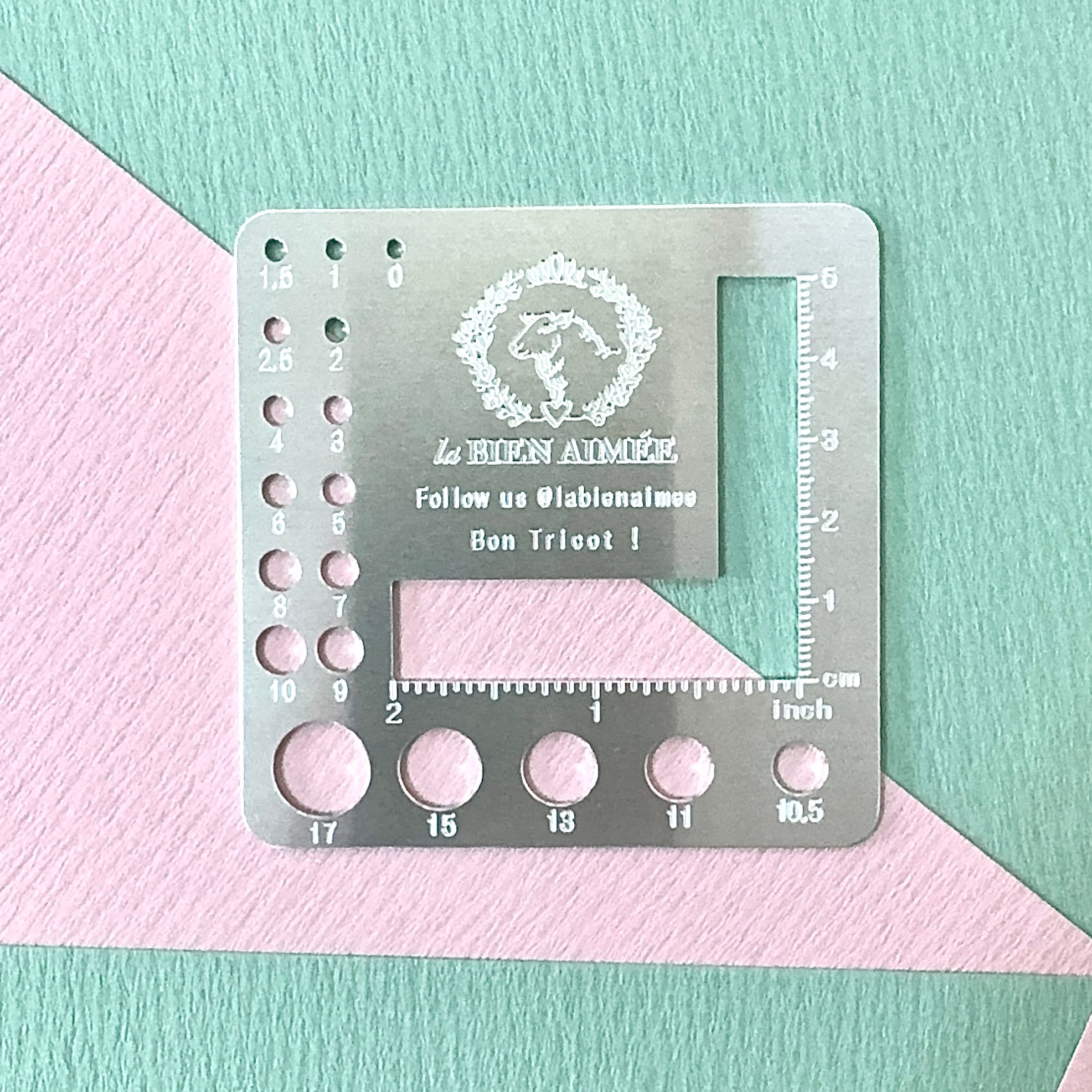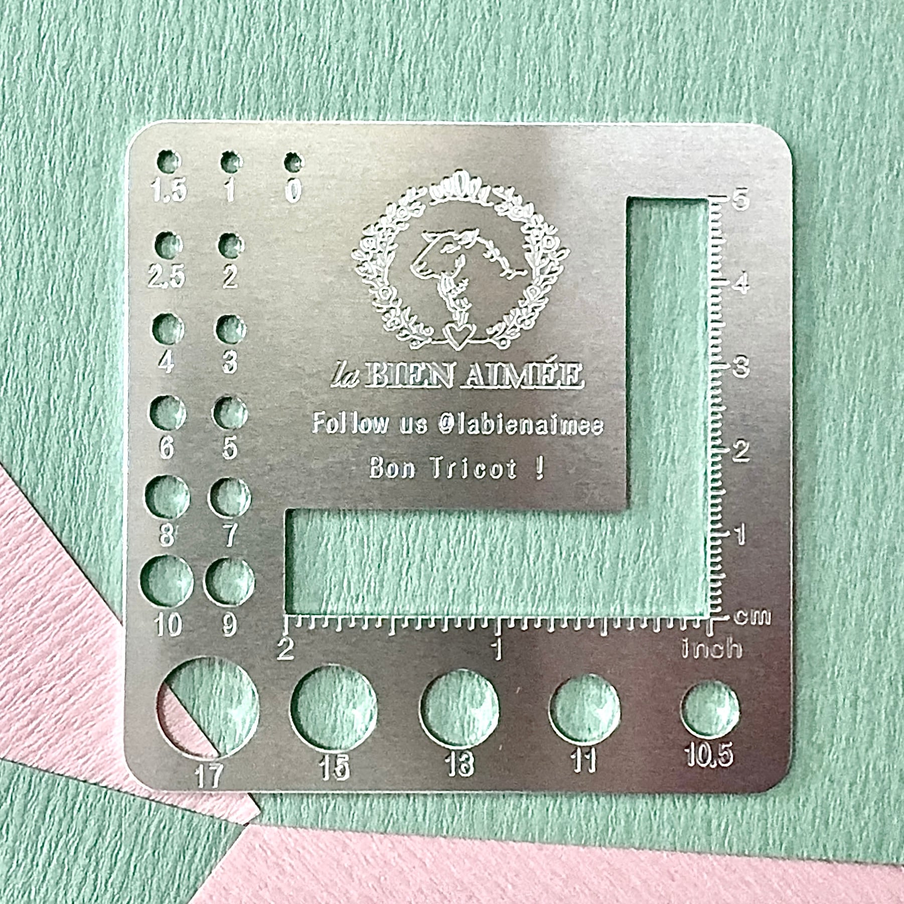 La Bien Aiméeのために特別にデザインされた、美しく仕上げられたニッティング用ゲージルーラーです。